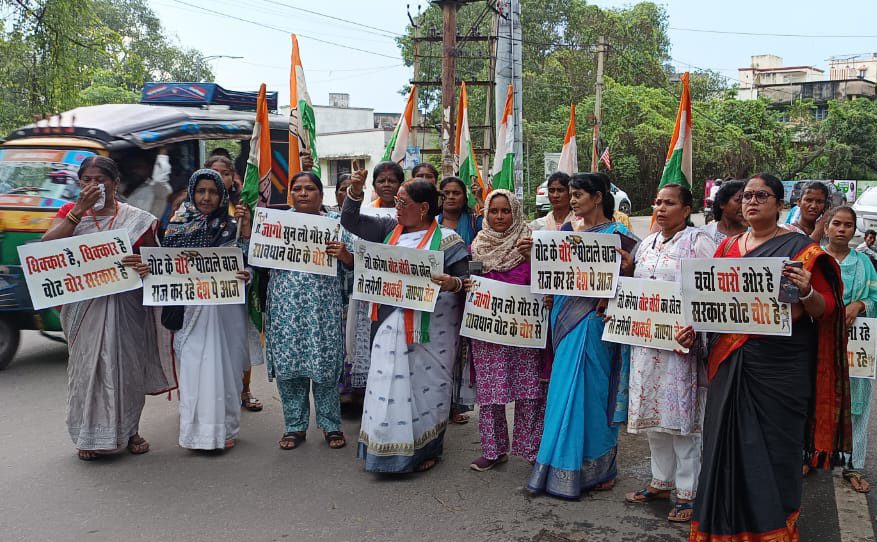 वोट चोर गद्दी छोड़ का नारा के साथ महिला कांग्रेस ने किया विरोध प्रदर्शन