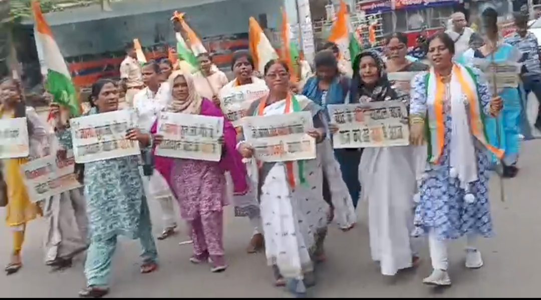 तख्ती और मशाल लेकर महिलाओं ने धिक्कार है सरकार वोट चोर है का लगाया नारा
