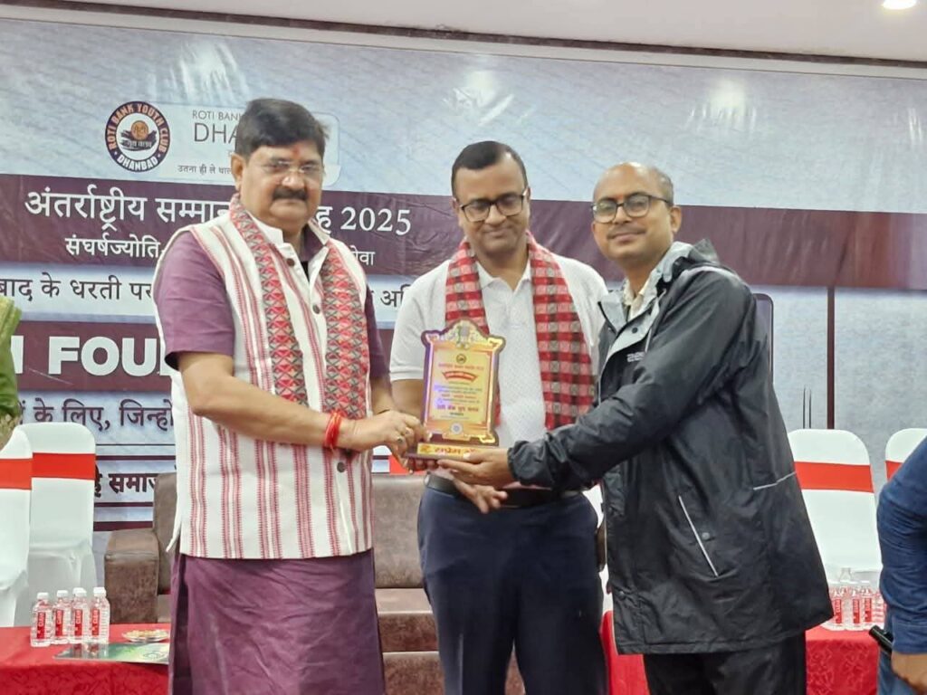 धनबाद. रोटी बैंक यूथ क्लब धनबाद के तत्वाधान में अंतरराष्ट्रीय सम्मान समारोह का आयोजन सम बोधि रिजॉर्ट गोविंदपुर धनबाद में संपन्न हुआ। इस सम्मान समारोह में मुख्य रूप से उड़ीसा के पूर्व गवर्नर और झारखंड प्रदेश के पूर्व मुख्यमंत्री रघुबर दास, धनबाद विधायक राज सिन्हा, धनबाद नगर निगम के पूर्व महापौर चंद्र शेखर अग्रवाल, जिला परिषद अध्यक्षा शारदा देवी, प्रदेश कार्यसमिति सदस्य देवाशीष पाल, अशरफी हॉस्पिटल के सीईओ और समाजसेवी गोपाल जी, धनबाद के समाजसेवी शांतनु चंद्रा, प्रदेश के किन्नर समाज के सुनैना किन्नर इत्यादि मुख्य रूप से उपस्थित हुए। रोटी बैंक यूथ क्लब ने रक्त दान के छेत्र में, सामाजिक कार्य के छेत्र में , सांस्कृतिक कार्यों के छेत्र में देश विदेश से पहुंचे लोगों को सम्मानित रघुबर दास के हाथों करवाने का काम किया।