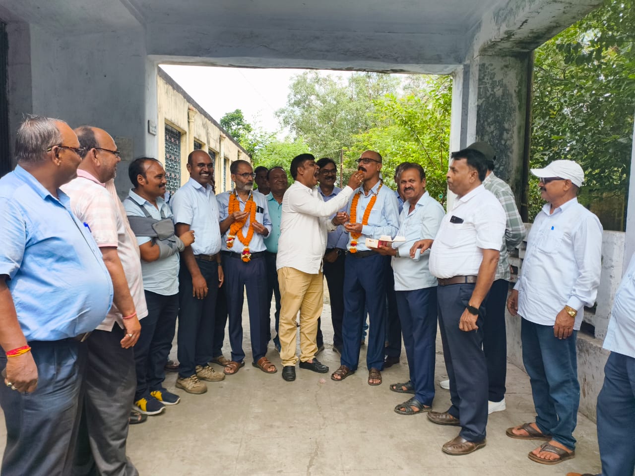उपाध्यक्ष संजीत सिंह ने भागवत तिवारी और बिनोद सिंह को माला पहनाकर और मिठाई खिलाकर स्वागत किया.