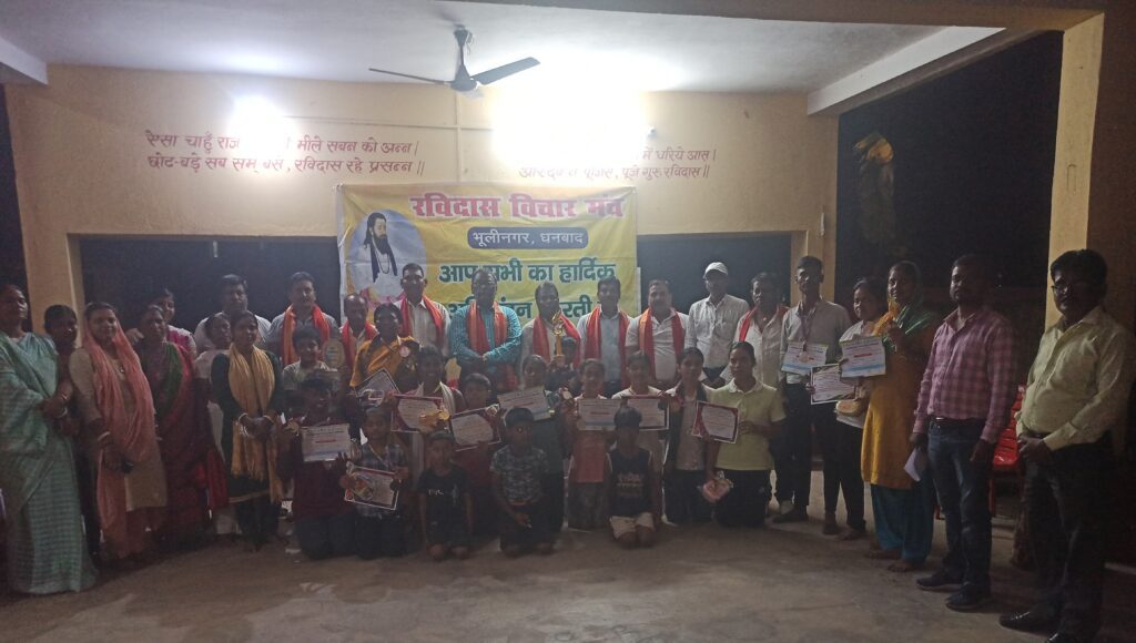 कार्यक्रम की अध्यक्षता रविदास विचार मंच के अध्यक्ष मोहन राम ने किया. कार्यक्रम में मुख्य अतिथि बीसीसीएल के तेतुलमारी कोलियरी के परियोजना पदाधिकारी सुनील कुमार दास, विशिष्ट अतिथि राजेंद्र प्रसाद, नन्दलाल दास, नरेश पासवान, भोलू यादव, वीरेंद्र पासवान, उपस्थित हुए. अतिथियों का स्वागत मंच के महासचिव छोटू राम ने अंगवस्त्र देकर किया. कार्यक्रम का संचालन चंदन कुमार ने किया.