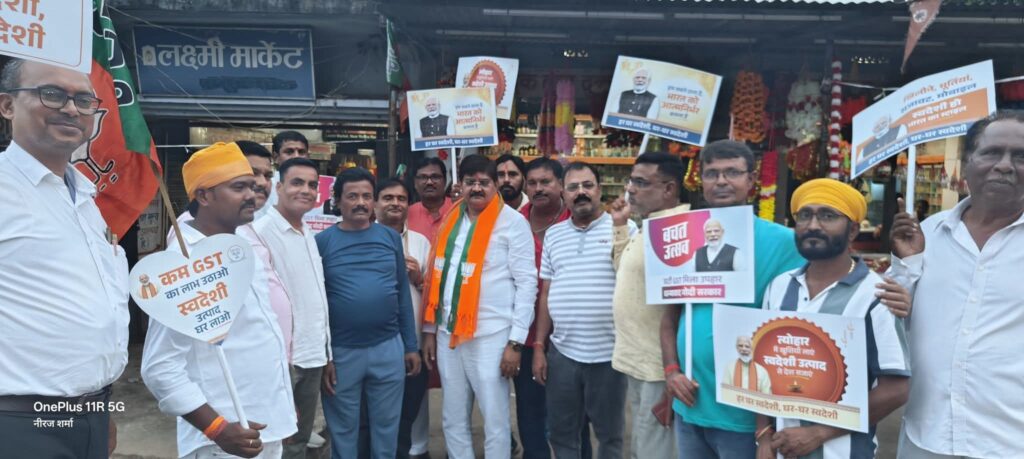 भाजपा भूली मंडल अध्यक्ष सूरज कुमार पासवान के नेतृत्व में प्रधानमंत्री नरेंद्र मोदी के जन्मदिन पर जी एस टी में कटौती कर देशवासियों को उपहार दिया था. जिसके फायदा को बताने के लिए कार्यक्रम आयोजित किया गया था. राज सिन्हा व्यवसायियों से मिले और गुलाब भेंट किया. साथ ही जी एस टी घटाने से आम लोगों को होने वाले फायदे के साथ व्यवसायियों को मिलने वाले लाभ को लेकर बताया.
