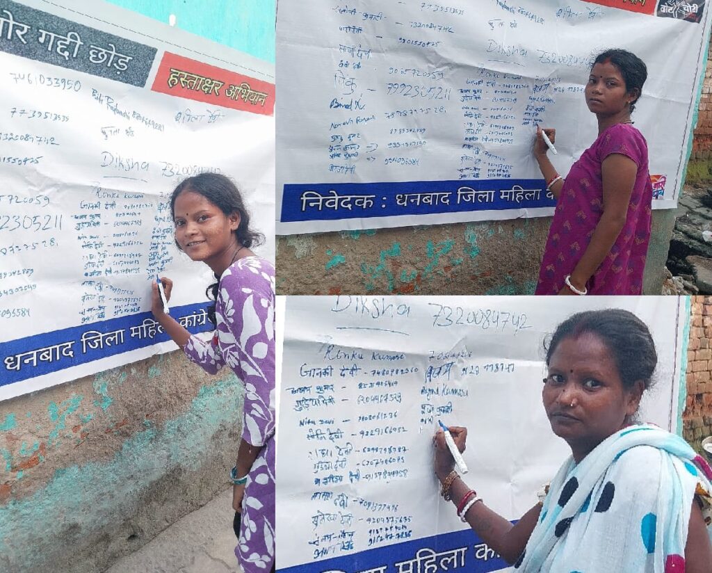 हस्ताक्षर अभियान में नीतू देवी, निखत परवीन, आशा देवी, लक्ष्मी देवी, सायरा बेगम, रितु देवी, पुष्पा देवी, सुलेखा देवी आदि शामिल थी.