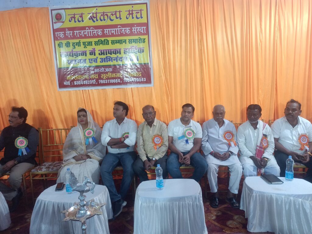 भूली. भूली विवाह भवन बी ब्लॉक में नव संकल्प मंच ने सभी दुर्गा पूजा समिति को चुनरी व मोमेंटो भेंट कर सम्मानित किया. कार्यक्रम की अध्यक्षता पंकज सिंह ने किया. संचालन जितेन्द्र चंद्रवंशी व मानस राजन पाल ने किया. कार्यक्रम की शुरुवात अतिथियों द्वारा दीप प्रज्जवलित कर किया गया. वहीं हर्षिता वर्णवाल द्वारा स्वागत गीत से अतिथियों का मन मोह लिया.