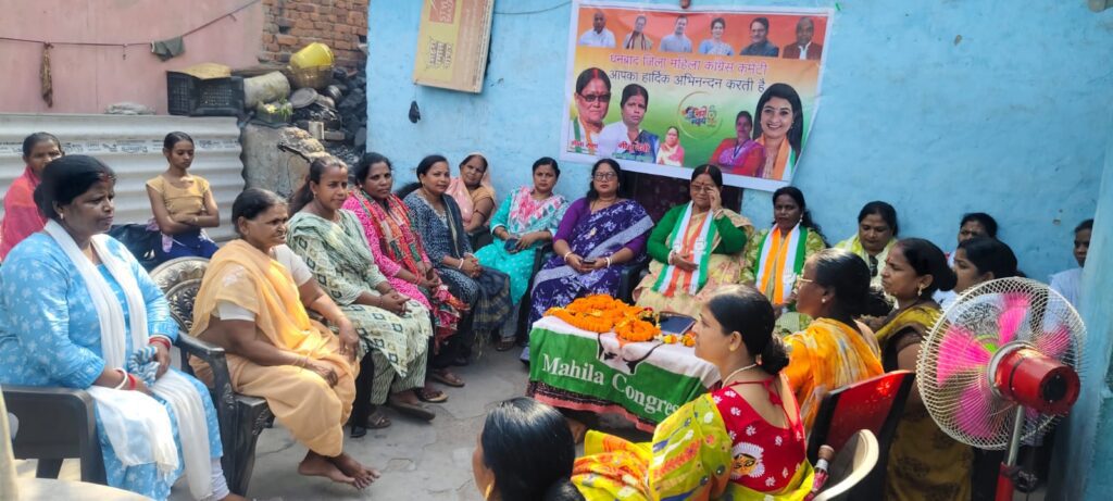 धनबाद। धनबाद जिला महिला कांग्रेस कमिटी द्वारा राष्ट्रीय अध्यक्ष अलका लांबा जी और झारखंड प्रदेश अध्यक्ष गुंजन सिंह जी के निर्देशानुसार जिला नेतृत्व सृजन कार्यक्रम के तहत नीतू देवी व मालती देवी के नेतृत्व में के सी बी कॉलोनी धनसार में आयोजित कार्यक्रम में आधा दर्जन महिलाओं ने जिलाध्यक्ष सीता राणा के उपस्थिति में महिला कांग्रेस का दामन थामा।